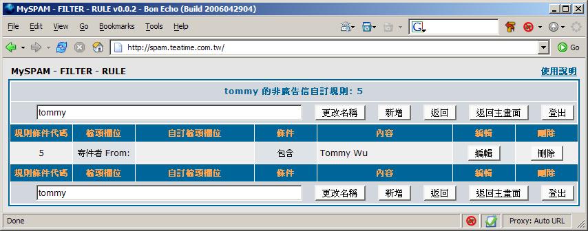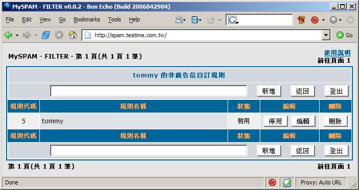 在畫面上方或下方的輸入元件中, 打入新的規則的名稱, 然後按 "新增" 按鈕就可以新增一筆規則.
