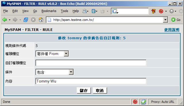 透過這個功能, 您可以設定符合這些條件的信件, 系統直接把信寄給您, 而不要視為廣告信件存到資料庫中. 每一個條件都是獨立的, 只要符合其中一個條件, 就不會被認定是廣告信件.