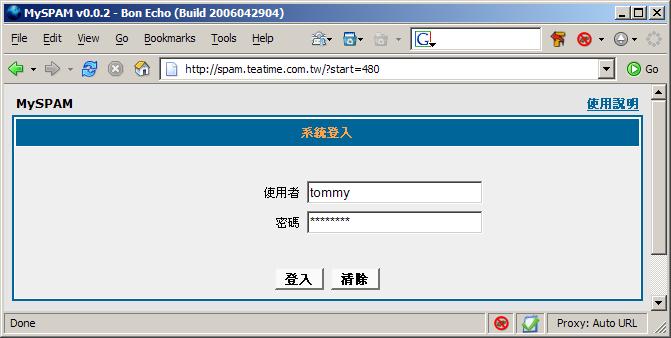 MySPAM 使用您的 email 帳號與密碼做為進入這個系統的認證方式. 您只要輸入您的 email 帳號 (@ 之前的那個名字) 與密碼就可以登入這個系統.